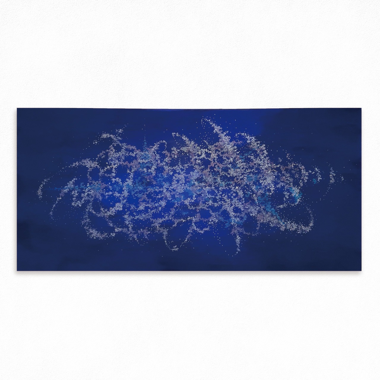ここでいう心の音というのは、感情ではなくそれになる前の状態の音を指しています。私はアファンタジアという脳の特性ゆえに視覚的な心象イメージをもたず、その瞬間瞬間に在る何か(私は音の粒と言っています)を丸をつかって深層に湧き出てくる深度の異なる青の世界に描き出すことで、正負どちらでもない0地点に在る音を作品として昇華しています。