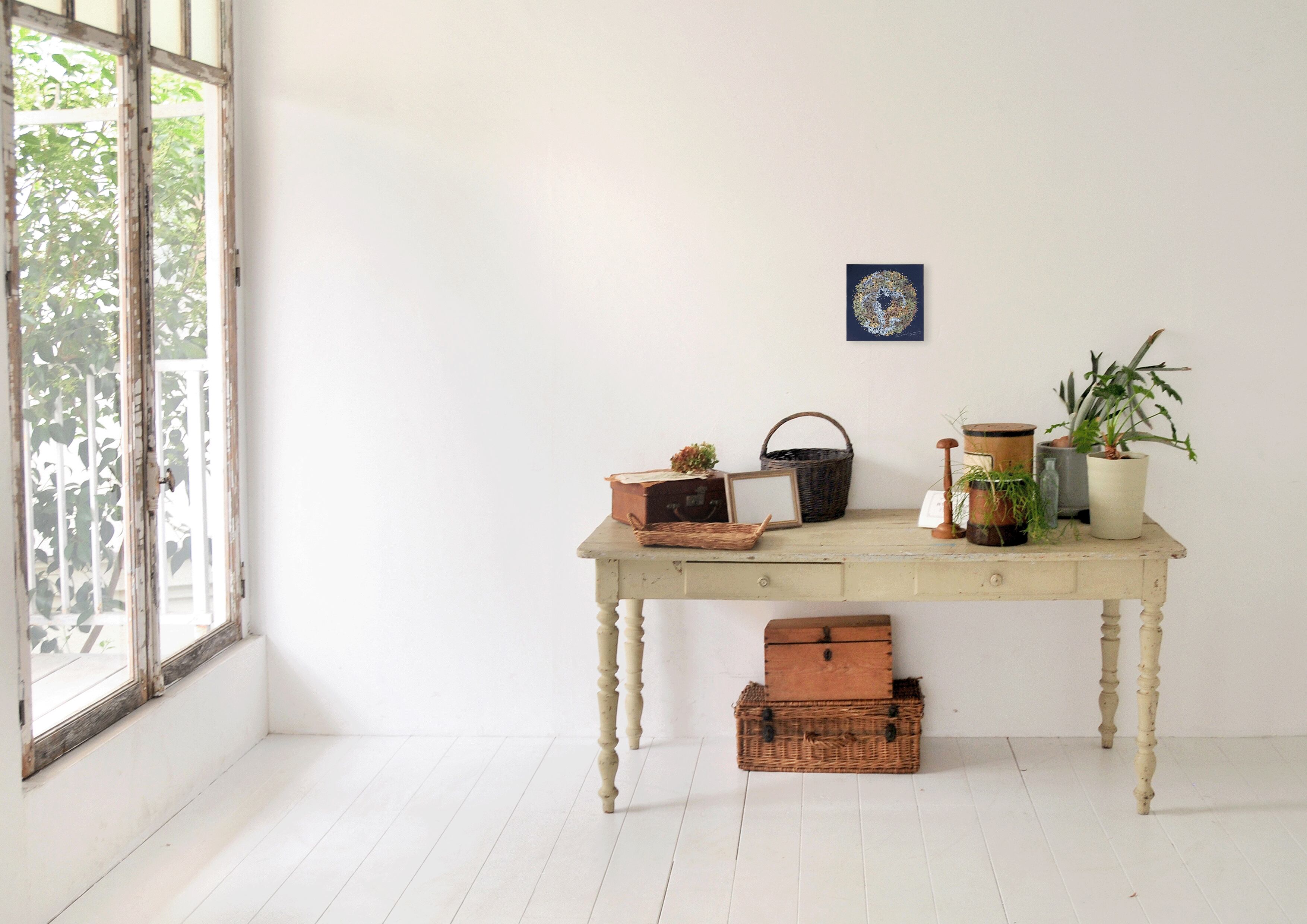 私は普段、心の音をテーマに絵画として二次元に描かれた心の空間と実際の展示空間である三次元に音楽や立体などで構成したインスタレーションで表現しています。